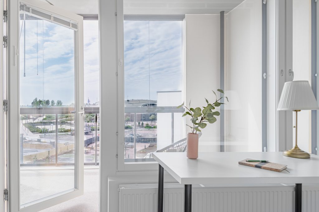 Eikä pelkästään pohja, vaan isot lasitetut parvekkeet ja isot ikkunat, joista tulee paljon valoa. Saunalahdesta löydät varmasti mieleisen.